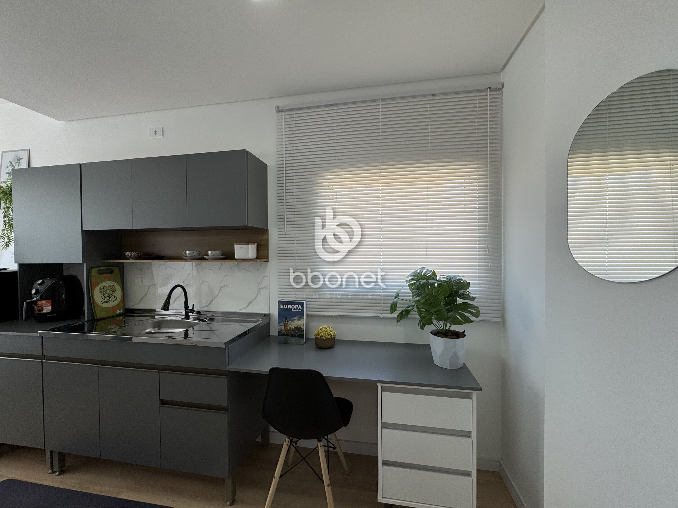 Com 27m² planejados de forma inteligente, este espaço em andar alto é um convite à criatividade. O ambiente integrado é banhado pelo sol e se estende para uma varanda privativa – o lugar perfeito para um café da manhã ou para relaxar no fim do dia. Novo e pronto para receber seu toque pessoal, ele é a tela em branco para o seu projeto dos sonhos.