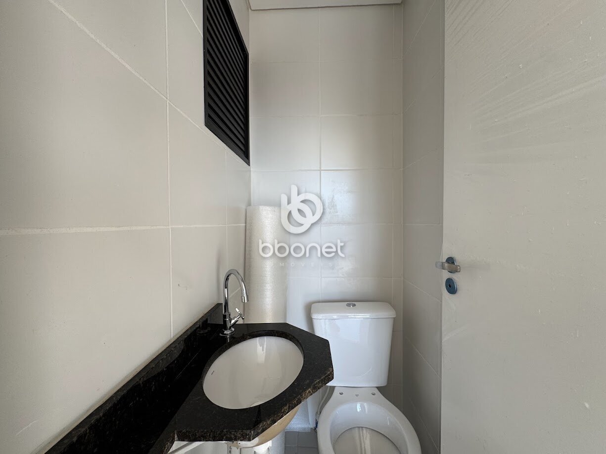 Edifício com elevador, salão de festas e acesso por reconhecimento faciial.